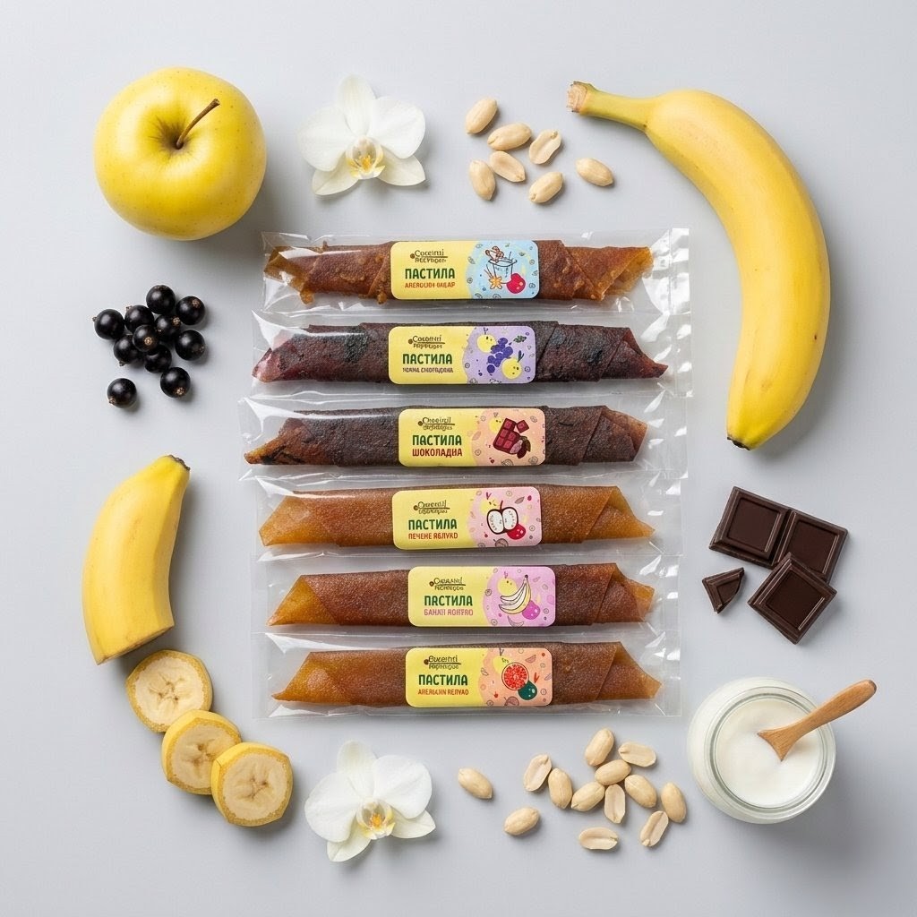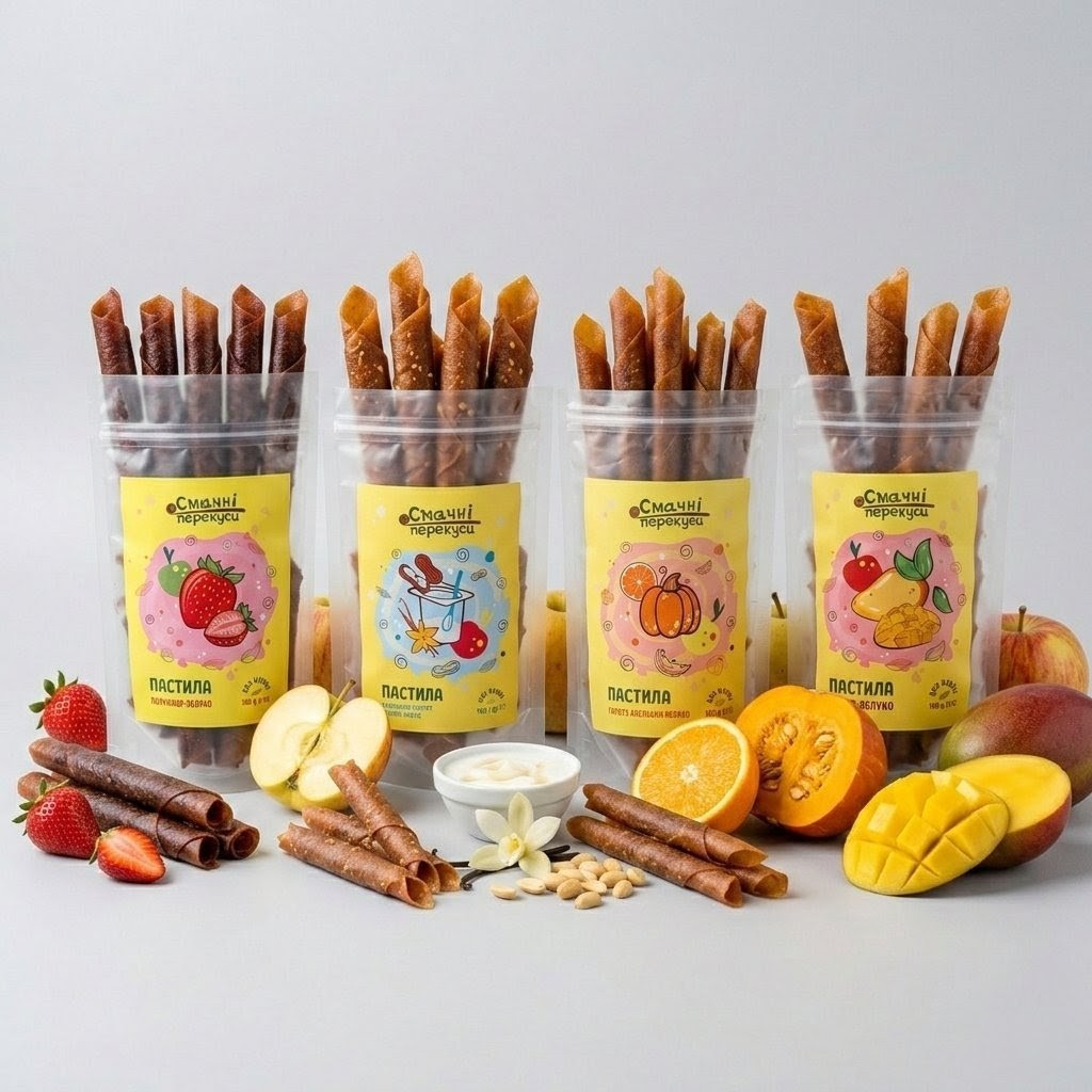 Наша пастила – це 100% натуральний склад, ретельно відібрані фрукти та ягоди. Ми пропонуємо великий вибір авторських смаків, які задовольнять найвибагливіших гурманів